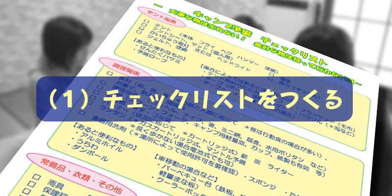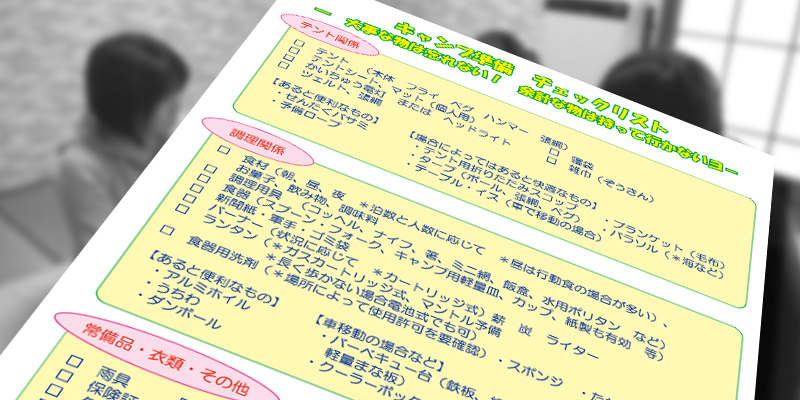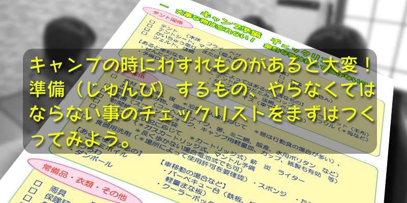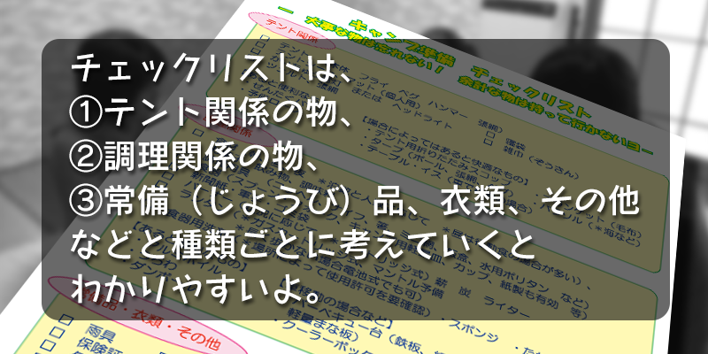 キャンプではどんなものが必要なのか、チェックリストのサンプルをみてね。