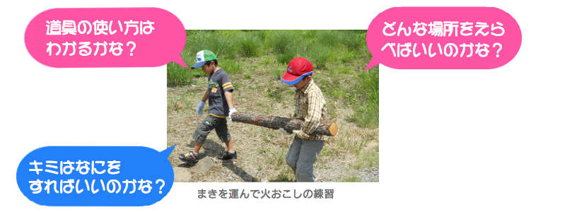 火をおこすのも、カマドを組んでまきを使う方法、バーナーやバーベキュー台を使う場合でそのやり方はちがうよ。