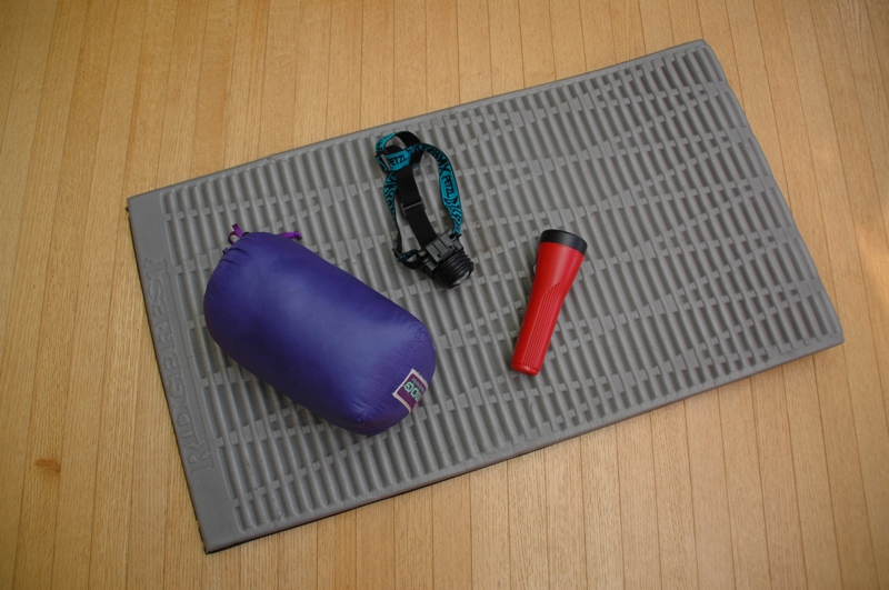 マット(個人用)、寝袋 (ねぶくろ)、かいちゅう電灯またはヘッドライト、 人数分