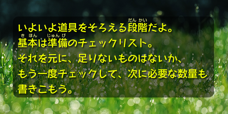 また準備(じゅんび)をしたものを入れるザックも必要だね。