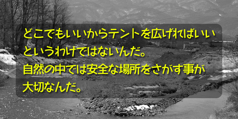 安全な場所を選んで、楽しいキャンプをしようね。