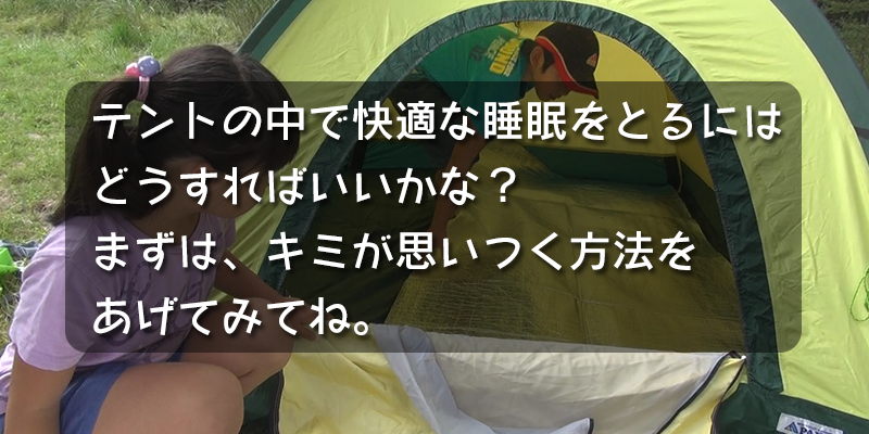 テントの中で快適(かいてき)に眠(ねむ)るには、どうしたらいいと思う?