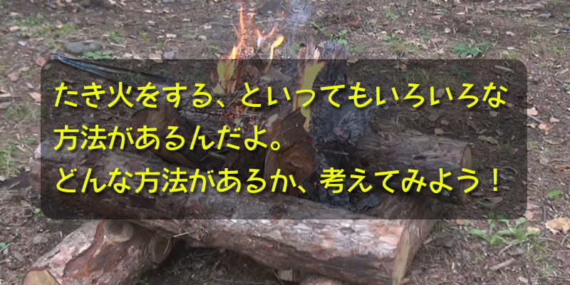 地面に直接(ちょくせつ)薪(まき)を組む方法などがあるんだよ。