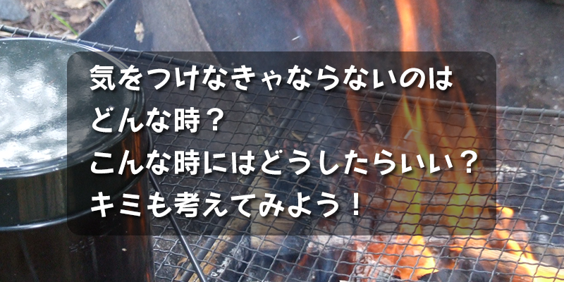気をつけなきゃならないのは、どんな時? 気をつけなきゃならないのは どんな時? こんな時にはどうしたらいい? キミも考えてみよう! (答えは写真をクリック!)