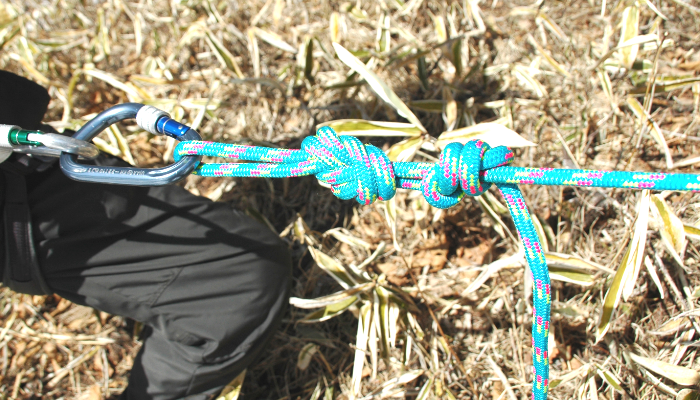 ロープを引っ張る時や、ツェルトなどのあなにロープを通して張る時などに使うんだよ。