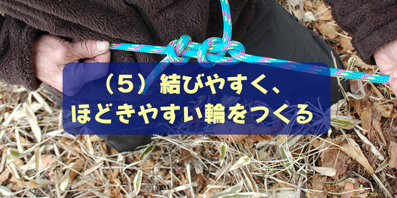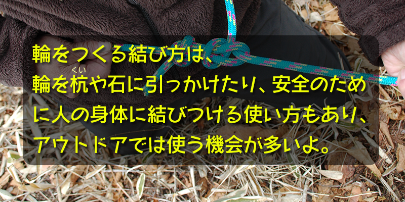 結んだあとに、ロープのどちらの方向から引っ張っても 輪の大きさが変わらないのが特徴(とくちょう)だよ。