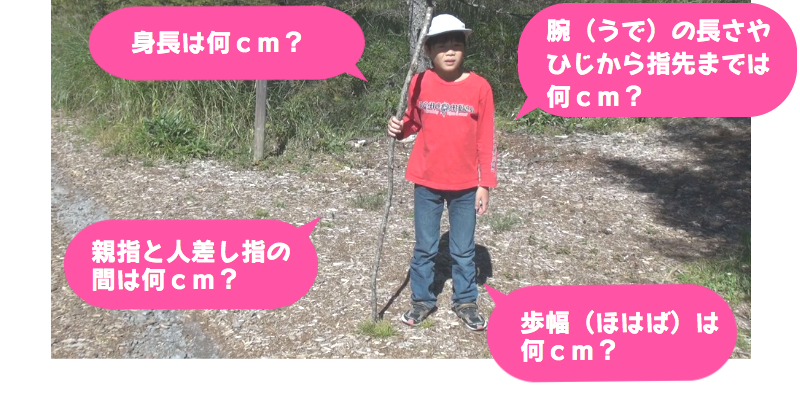 自分の体を使って物の長さや距離(きょり)を測(はか)ることができるよ。