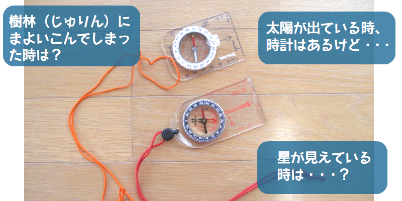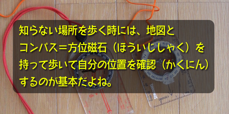 - だから、知らない土地を歩く時は地図とコンパスを必ずもってあるくようにしようね。