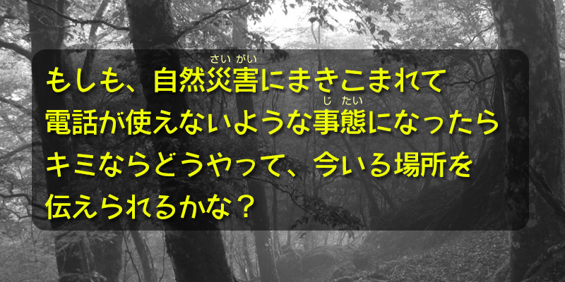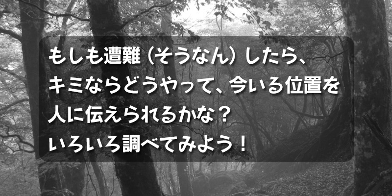 緊急(きんきゅう)の事態(じたい)がおこった場合には、無理に動くのではなく、まずは自分の位置を知らせ、救助(きゅうじょ)を待(ま)つことが大切だよ。